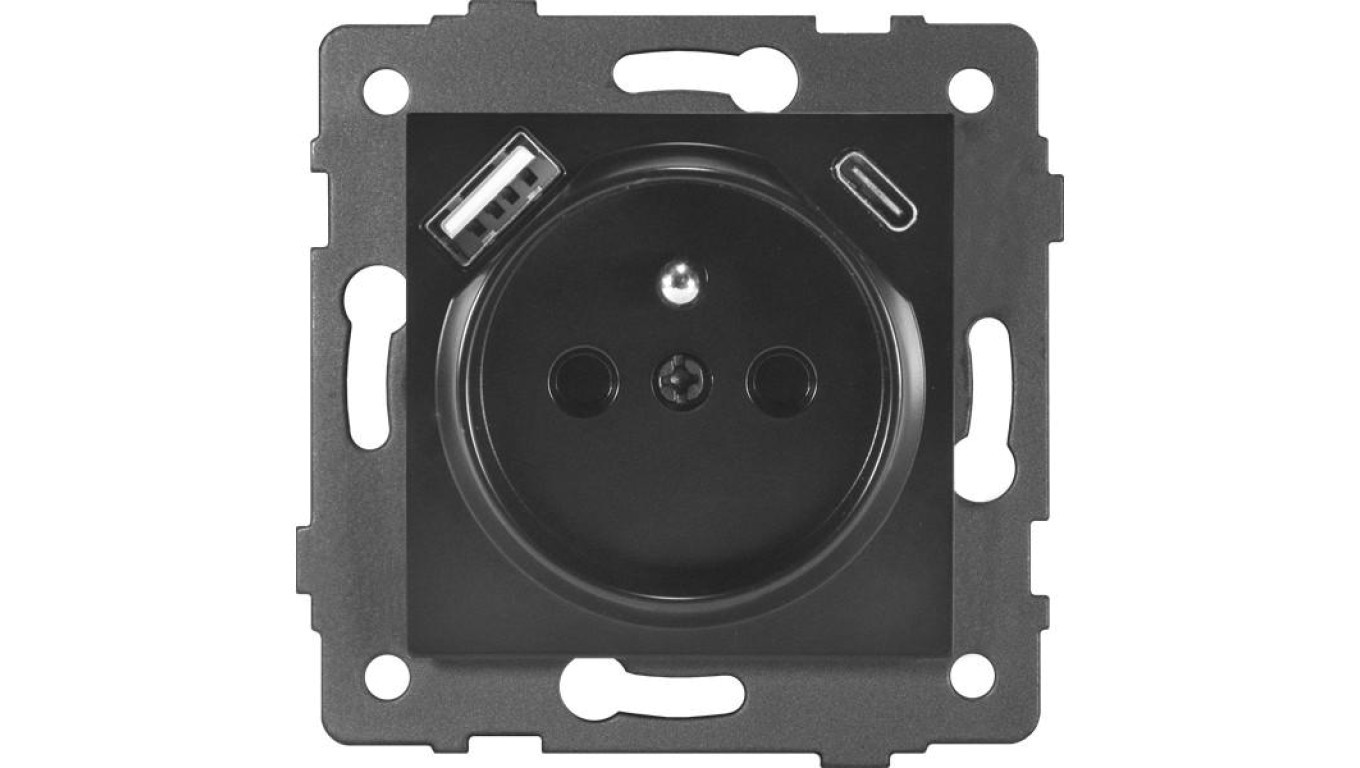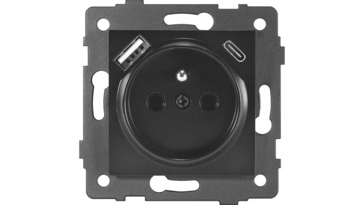 Gniazdo pojedyncze 2P+Z z gniazdem USB MODERN-Q, 16A-250V~, czarne