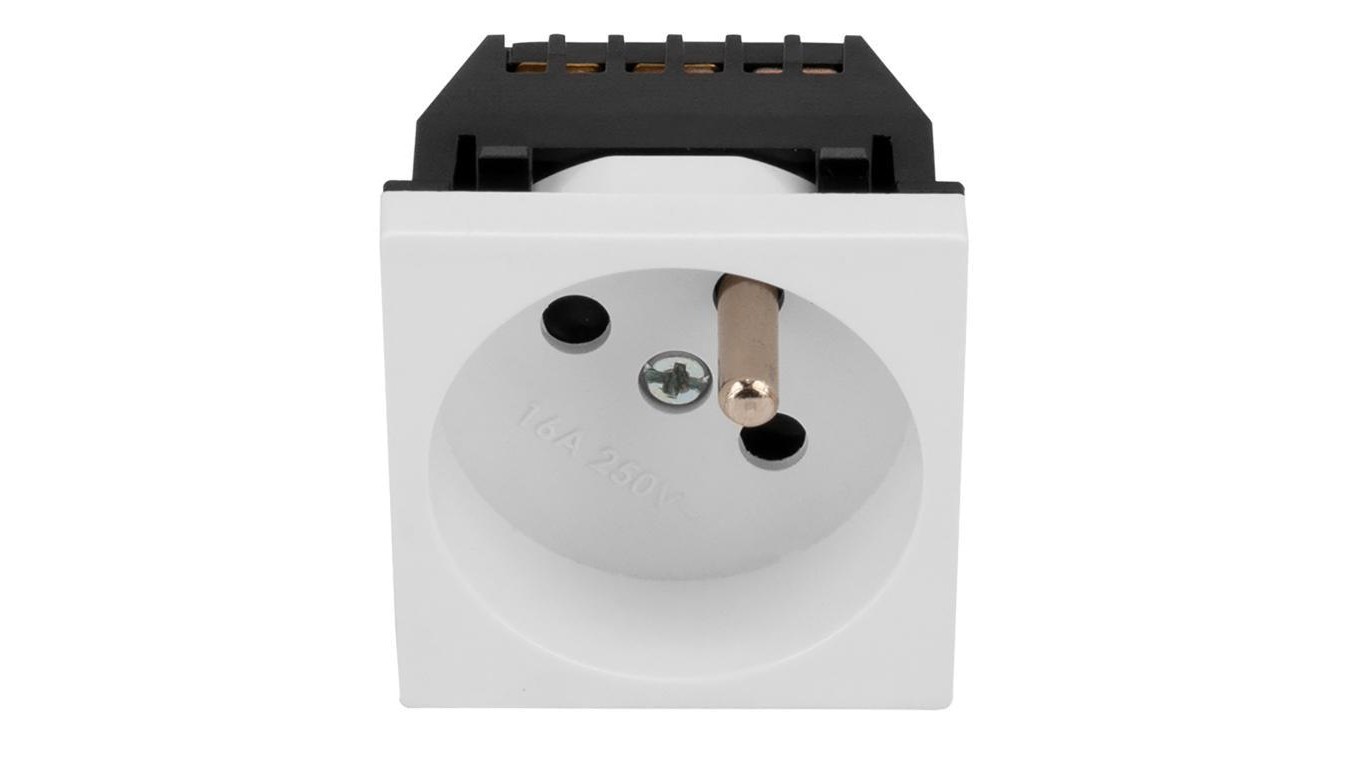 Gniazdo prądowe MOSAIC 45x45 do koryta 100x50 białe z bolcem uziemiającym 4/M/0010523000020001