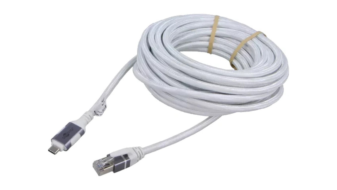 GOOBAY-74179 Kabel USB 3.1 RJ45 wtyk, USB C wtyk niklowany 7,5m biały PVC