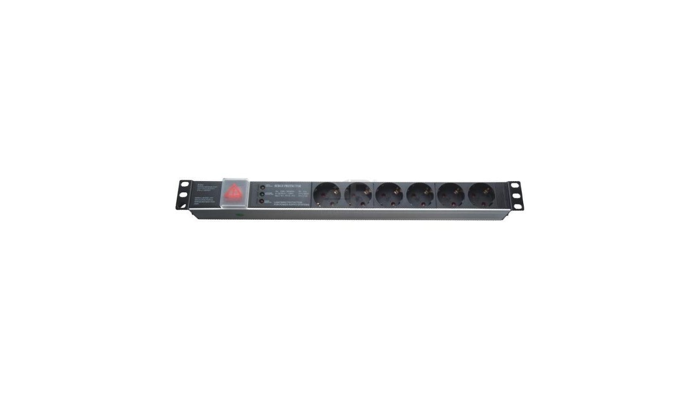 GT Networks Listwa zasilająca 19 1U 6 gniazd FR wtyk 230V unischuko 1,8m wyłącznik przeciwprzepięciowa