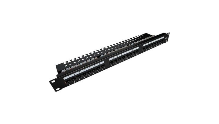 GT Networks Panel krosowy 19 1U 24 gniazda RJ45 kat. 6 nieekranowane UTP z półką czarny