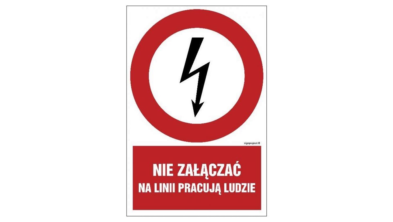 HC011 Nie załączać na linii pracują ludzie 25 x 37,5 cm PN - Płyta 1mm