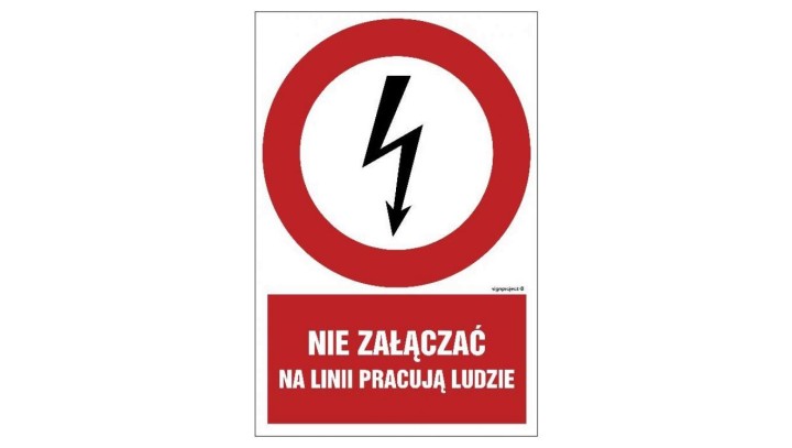 HC011 Nie załączać na linii pracują ludzie 30 x 45 cm PN - Płyta 1mm