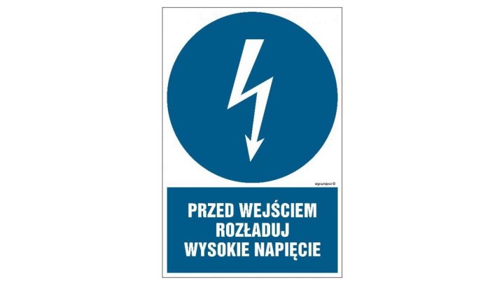 HE007 Przed wejściem rozładuj wysokie napięcie 70 x 105 cm FN - Folia samoprzylepna