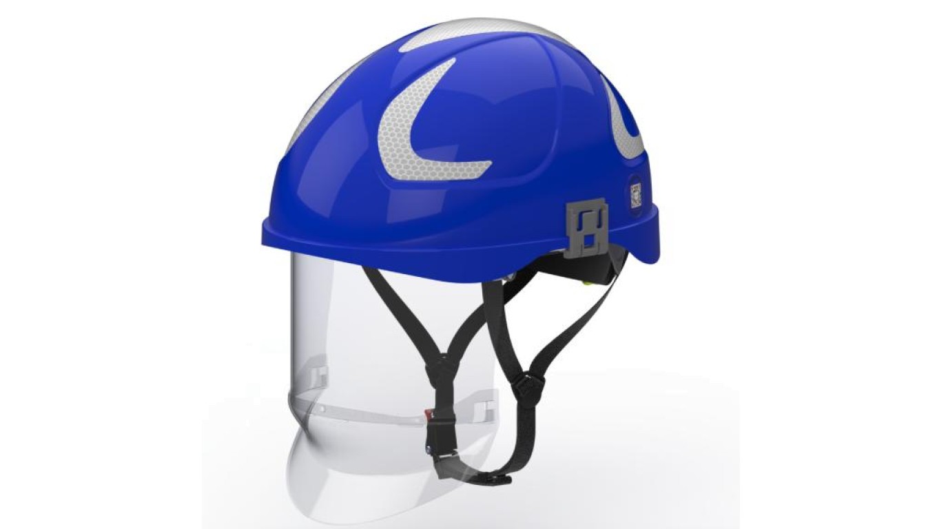 Hubix niebieski hełm elektroizolacyjny z osłoną twarzy (ruchomą) W1 klasy 1 Box-test, do 20 kV AC / 1,5 kV DC SECRA H058S