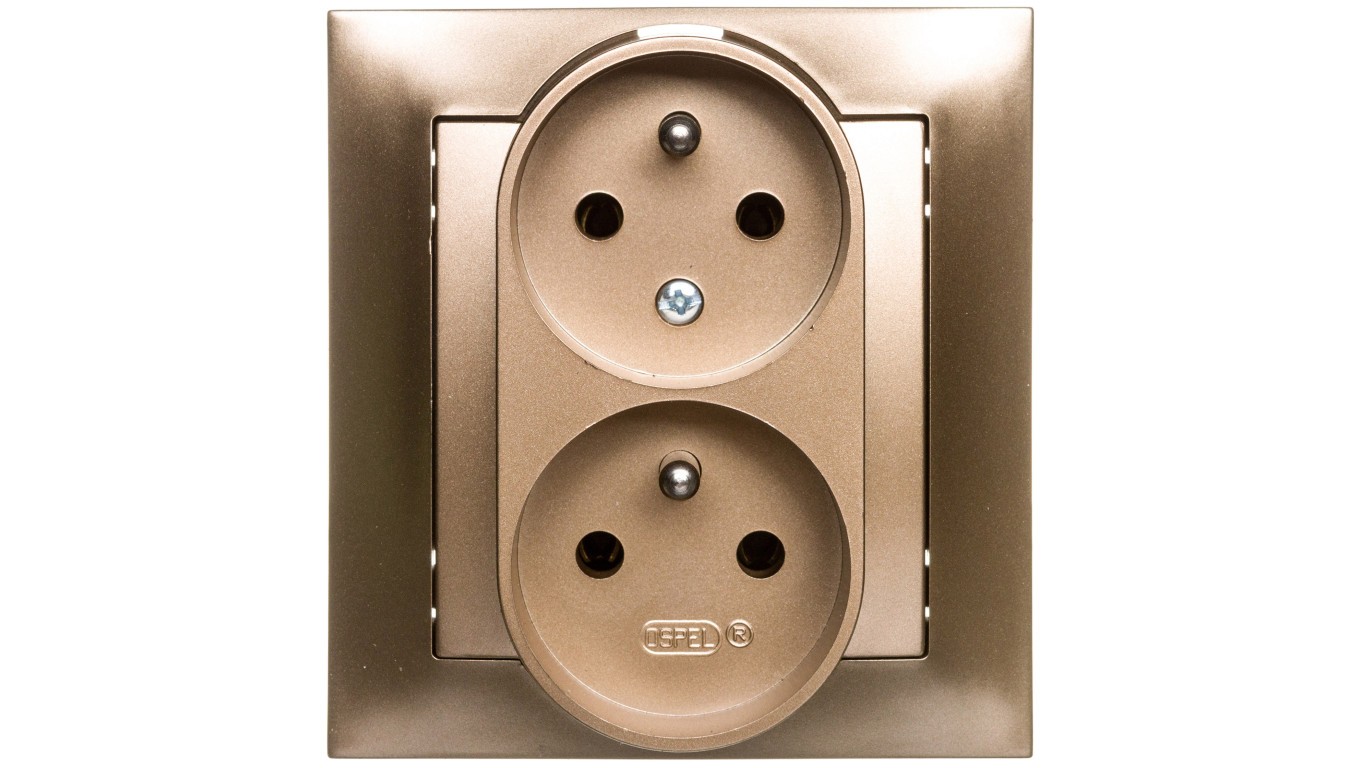 IMPRESJA Gniazdo podwójne z/u z niezamiennością faz złoty metalik GP-2YC/28