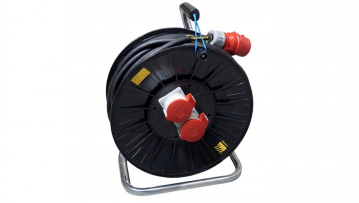 IP44 2xCEE 32A 5P 400V, 40m Przedłużacz budowlany siłowy na bębnie, H07RN-F 5x4mm2 PARTNERSITE 17303