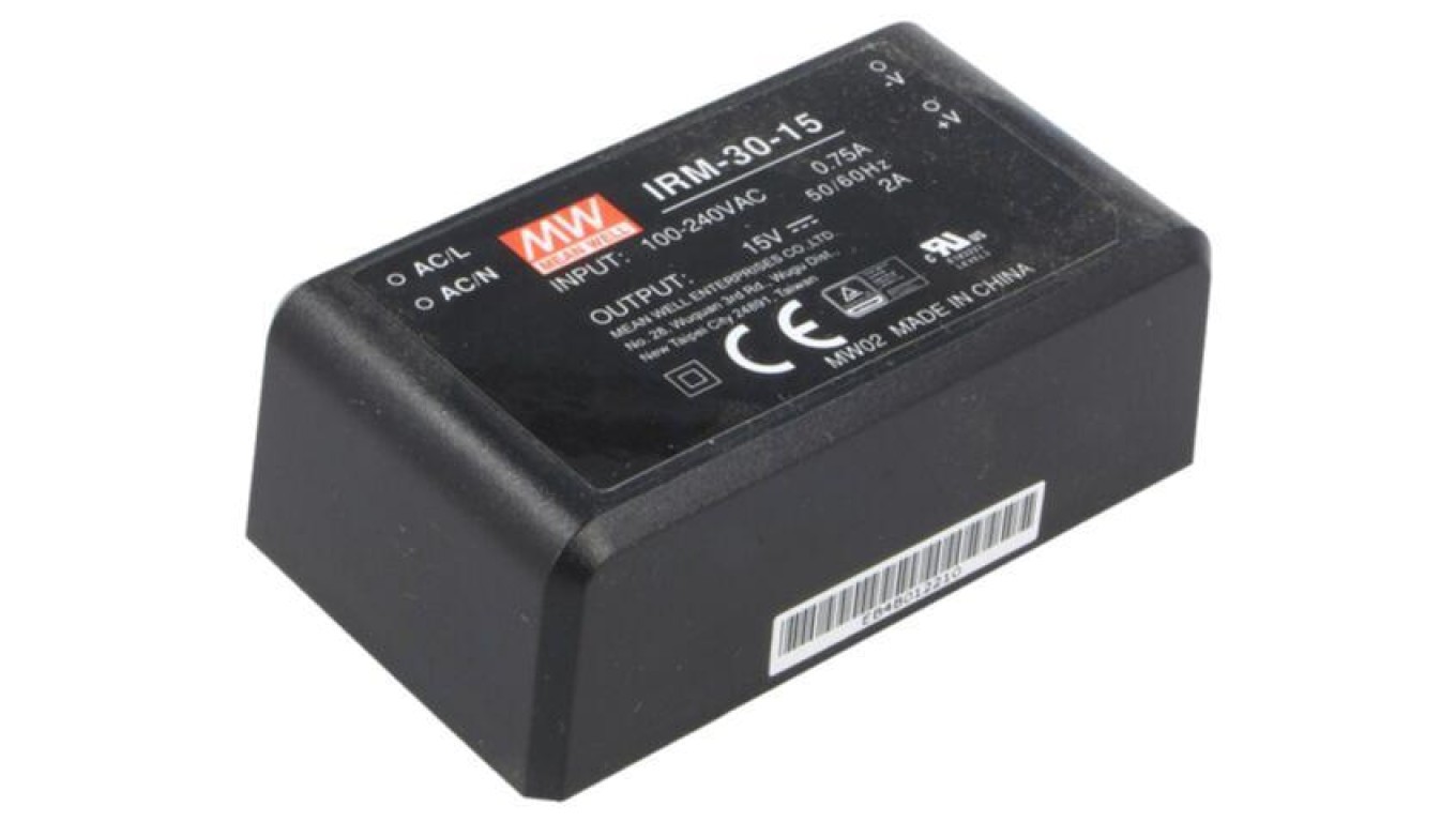 IRM-30-15 Przetwornica AC/DC, 30W, Napięcie wejściowe: 85÷264VAC, 15VDC, Iwyj: 2000mA, 88