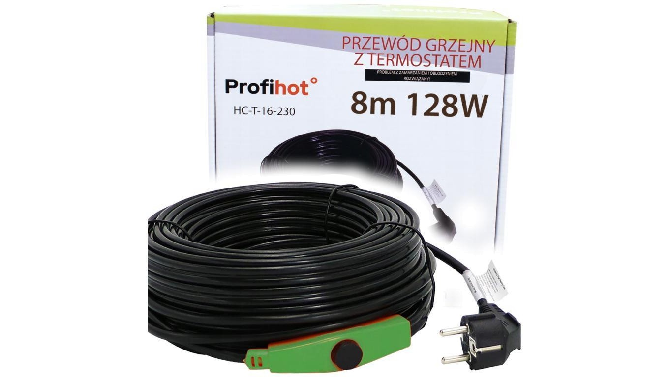 KABEL GRZEWCZY Z TERMOSTATEM 230V 128W 8M