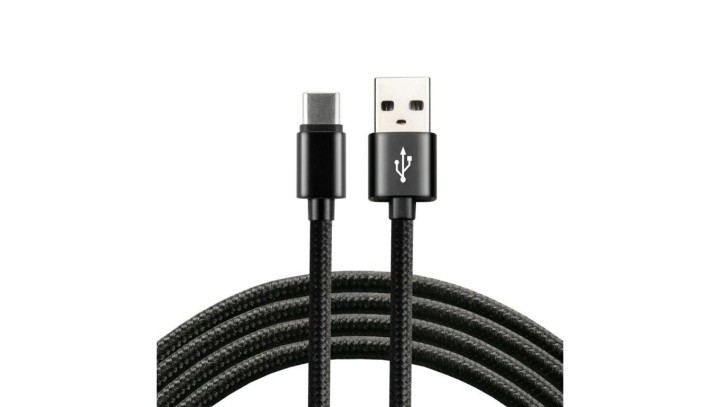 Kabel przewód pleciony USB - USB-C / Typ-C everActive CBB-2CB 200cm z obsługą szybkiego ładowania do 3A czarny