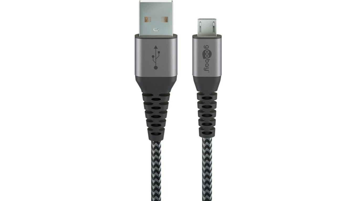 Kabel tekstylny Micro USB na USB-A z metalowymi wtyczkami ( szary / srebrny) 2 m - Długość kabla 2 m