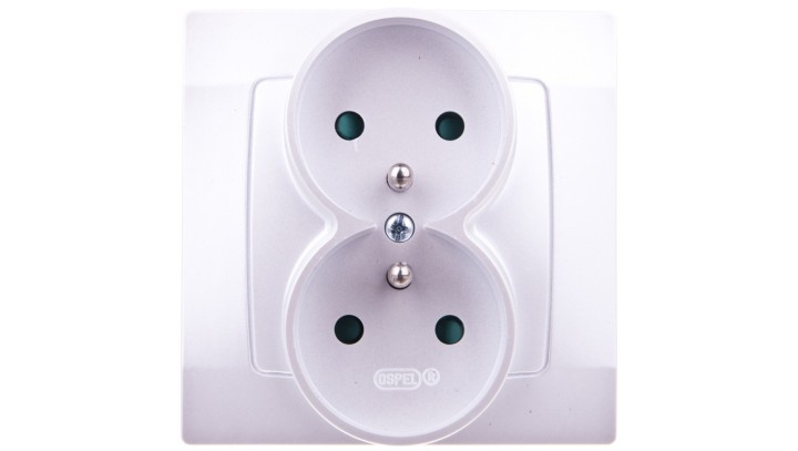 KARO Gniazdo podwójne z/u z przesłonami srebrny perłowy GP-2SZP/43