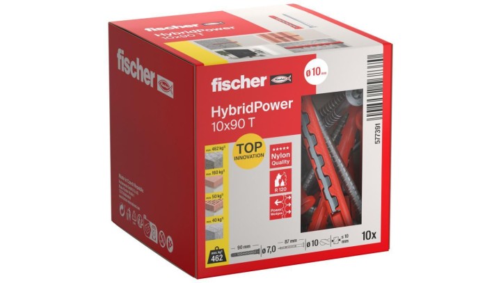 Kołki rozporowe uniwersalne HybridPower 10x90mm 2-składnikowe z łbem sześciokątnym TX40 13 7,0x89mm FISCHER 10szt