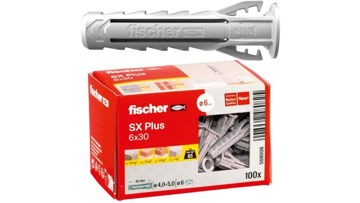 Kołki rozporowe uniwersalne SX Plus 6x30mm do wszystkich pełnych materiałów FISCHER 100szt