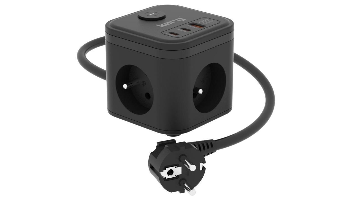 Kostka zasilająca 3-gniazdowa + szybka ładowarka USB-A+USB-C 1,5m 3×1,5mm2 H05VV-F 16A/250V~ KERG Smart czarna