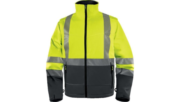 Kurtka ostrzegawcza Softshell z poliestru Stretch, 3 warstwy laminowane, kl.2, kolor Żółty Fluo-Szary, rozmiar: XXL, FASTJAXX