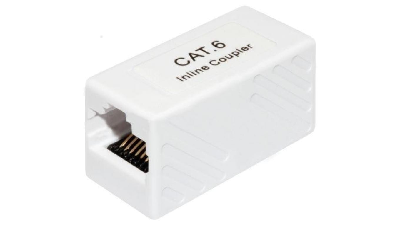 Łącznik modularny beczka 2xRJ45 8P8C kat.6 nieekranowany UTP biały