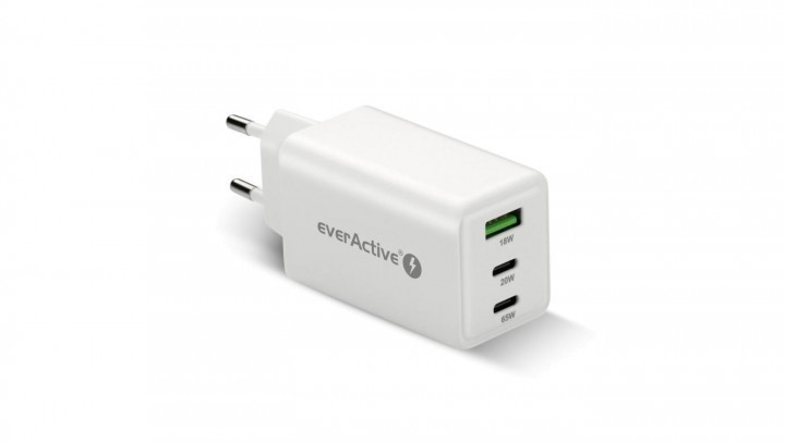 Ładowarka sieciowa everActive GaN SC-655Q z gniazdem USB oraz 2x USB-C PD PPS QC4+ 65W