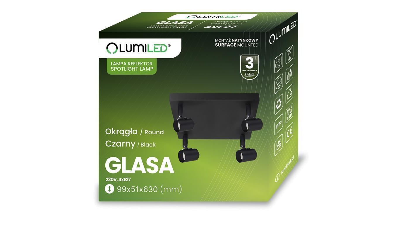 Lampa Sufitowa Plafon SPOT TUBA Reflektor Oprawa Halogenowa 4x E27 GLASA LUMILED