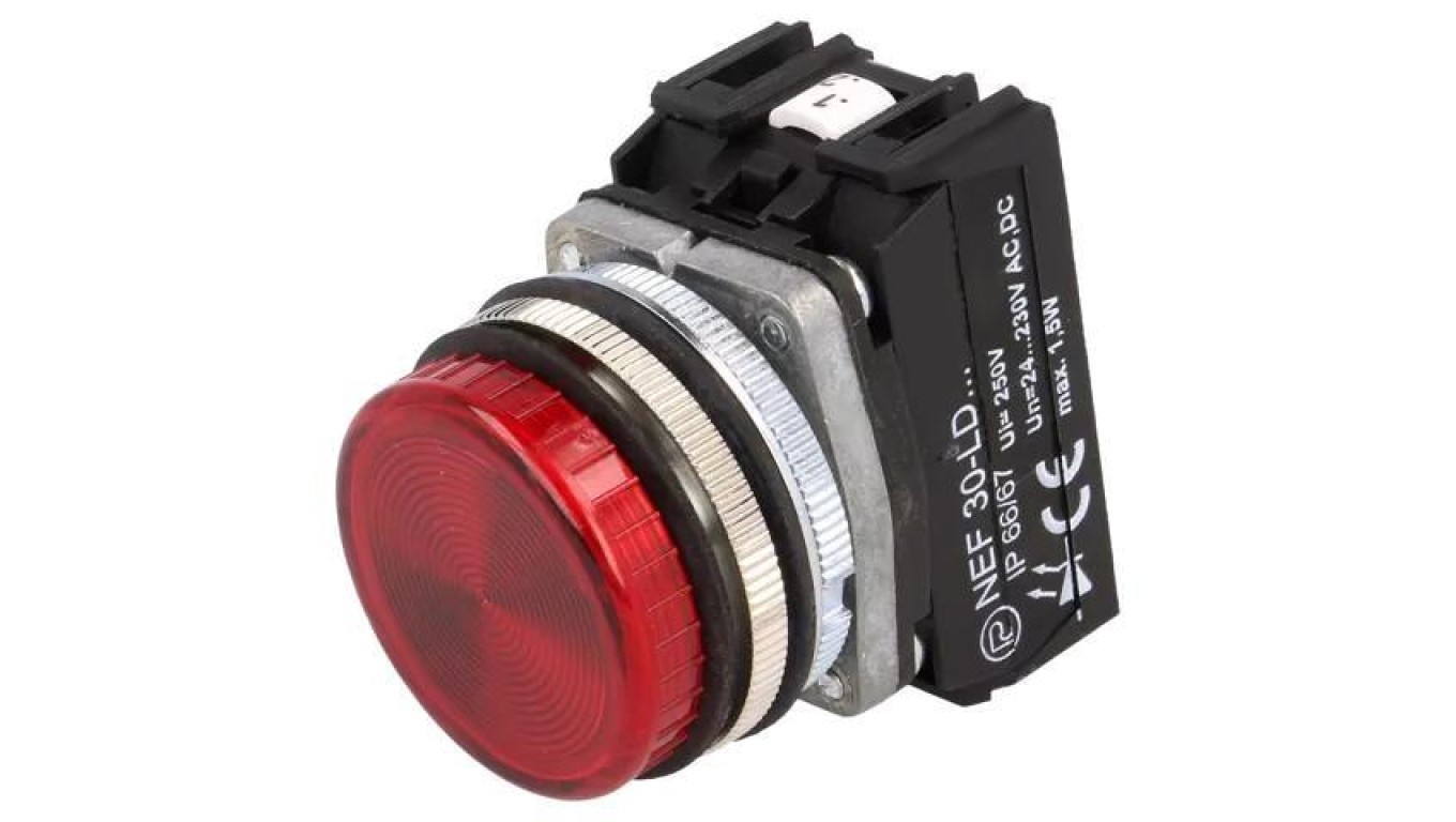 Lampka kontrolna, 30mm, Podświetlenie: LED, Ø30,5mm, 24÷230VAC, IP20, NEF30 NEF30-LDC 24-230V AC/DC