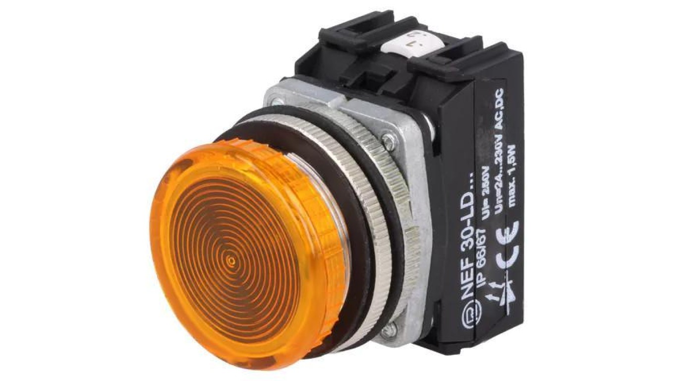 Lampka kontrolna, Podświetlenie: LED (żółty), 24÷230VAC 24÷230VDC, NEF30 NEF30-LDG 24-230V AC/DC