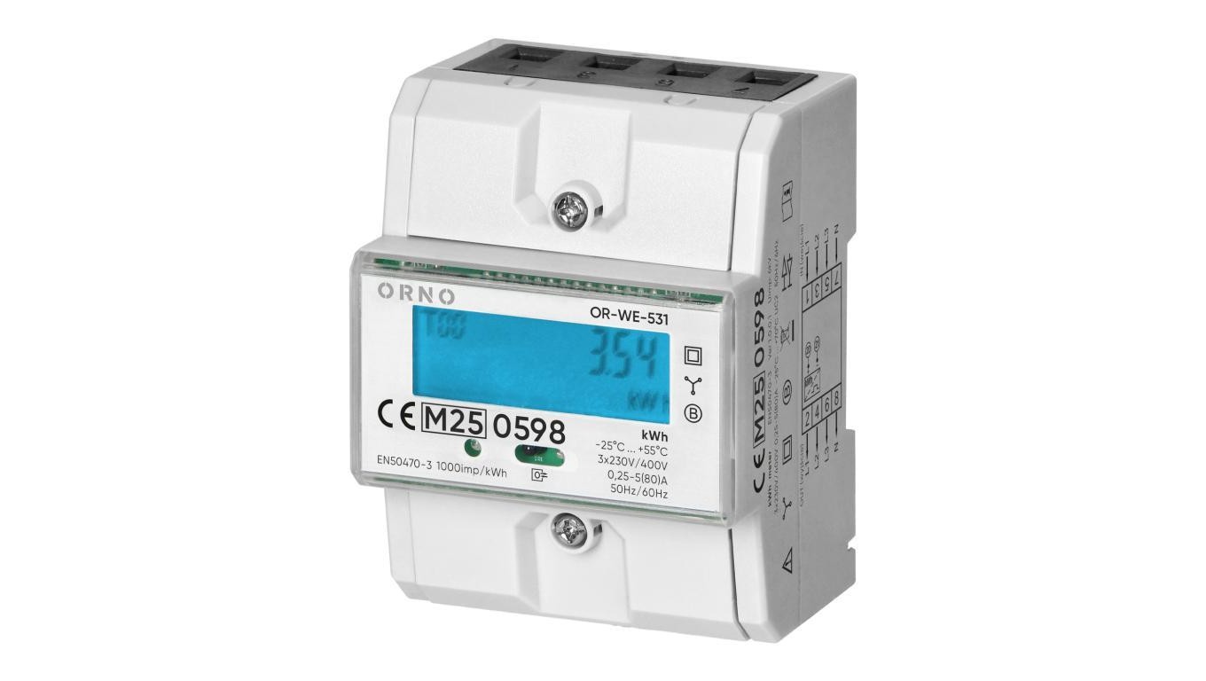 Licznik zużycia energii elektrycznej MID 3-fazowy 5/80A 4-modułowy z wyświetlaczem LCD ORNO