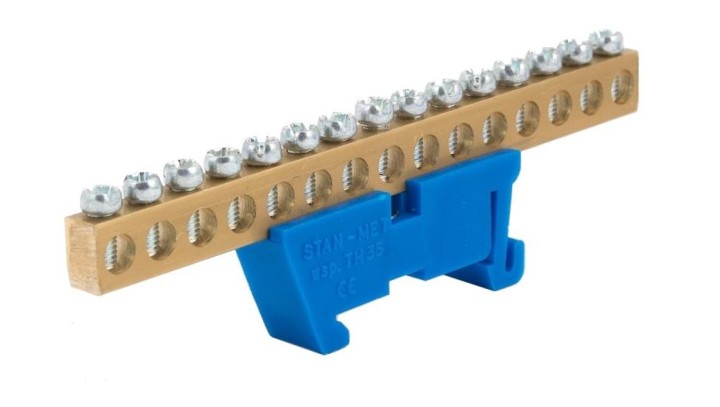 Listwa zaciskowa zerowa 15x16mm2 niebieska TH 35-15/N