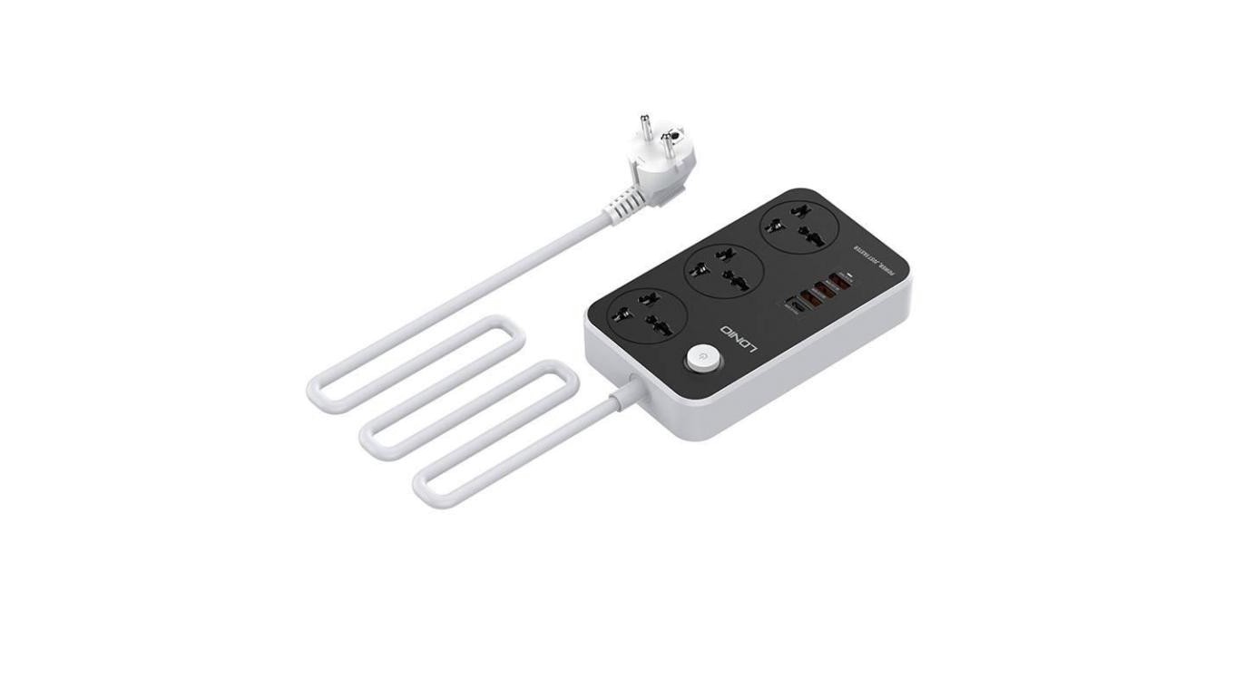 Listwa zasilająca z 3 gniazdami AC, 4x USB, LDNIO SC3412, EU/US, 2500W (szara)
