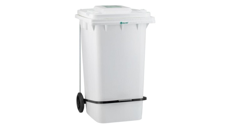 Merida Kosz na zużyte ręczniki papierowe MERIDA ECO PAPER, biały, na kółkach otwierany przyciskiem pedałowym 240 l KJB414