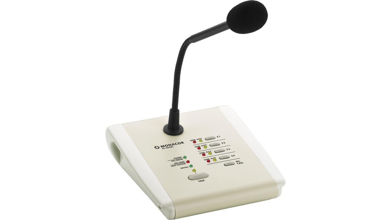 Mikrofon pulpitowy PA, 4-strefowy, współpracujący ze wzmacniaczem PA-40120 oraz mikserem strefowym PA-6040MPX PA-4000RC