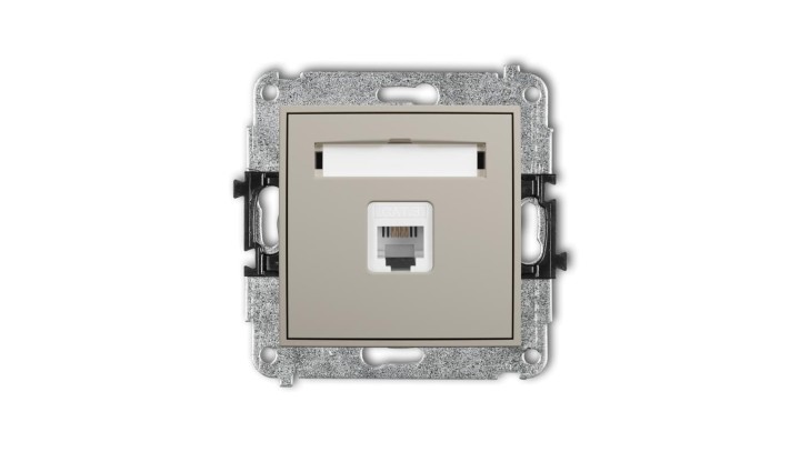 MINI Mechanizm gniazda telefonicznego pojedynczego 1xRJ11, 4-stykowy, beznarzędziowe taupe 60MGT-1