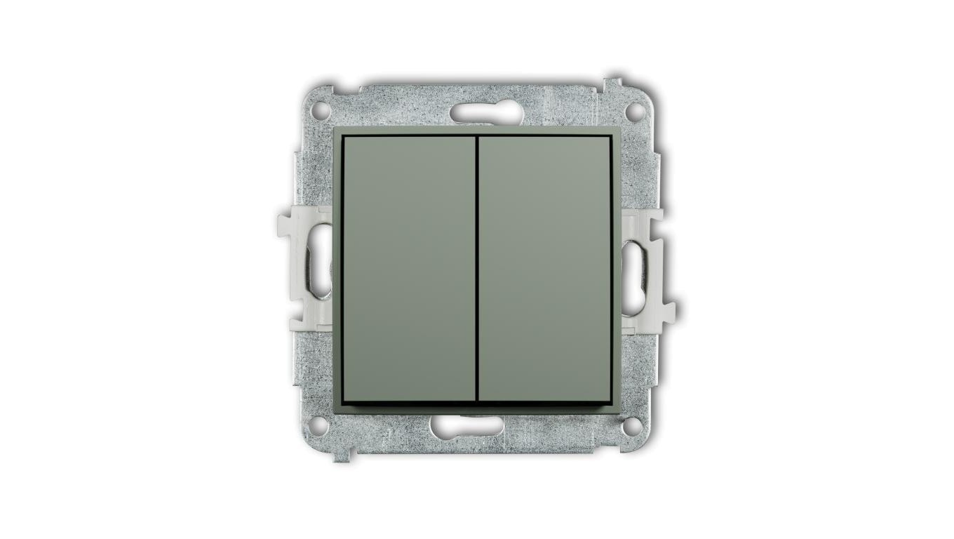MINI Mechanizm łącznika jednobiegunowego ze schodowym (dwa klawisze bez piktogramów, osobne zasilanie) szałwiowy 61MWP-10.21