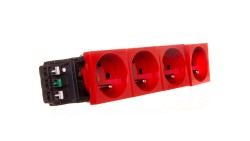 MOSAIC Gniazdo poczwórne z/u z blokadą czerwone 077344