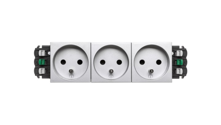 MOSAIC Gniazdo potrójne z/u 16A z przesłonami aluminium 079223