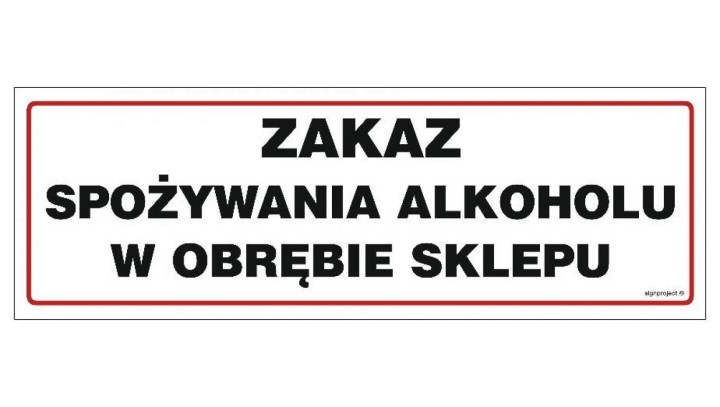 NC015 Zakaz spożywania alkoholu w obrębie sklepu 30 x 10 cm FN - Folia samoprzylepna