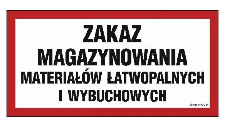 NC033 Zakaz magazynowania materiałów łatwopalnych i wybuchowych 30 x 15 cm PN - Płyta 1mm