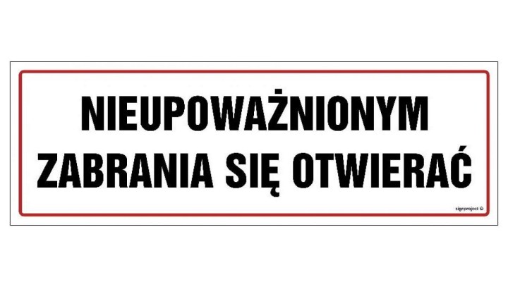 NC055 Nieupoważnionym zabrania się otwierać 60 x 20 cm FN - Folia samoprzylepna