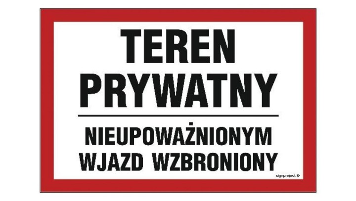 NC073 Teren prywatny nieupoważnionym wjazd wzbroniony 20 x 13,3 cm PN - Płyta 1mm