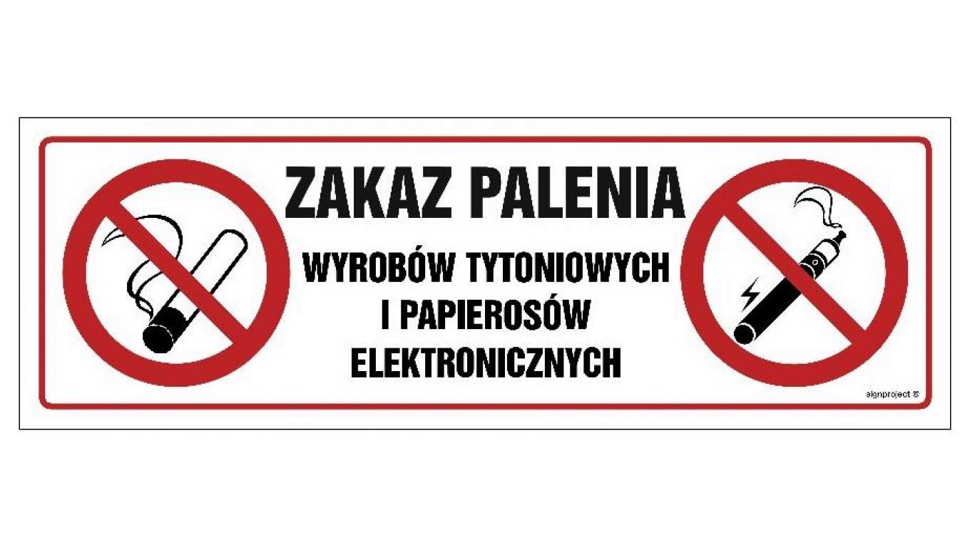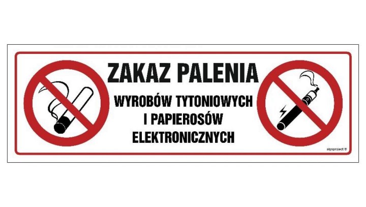 NC089 Zakaz palenia wyrobów tytoniowych i papierosów elektronicznych 30 x 10 cm FN - Folia samoprzylepna