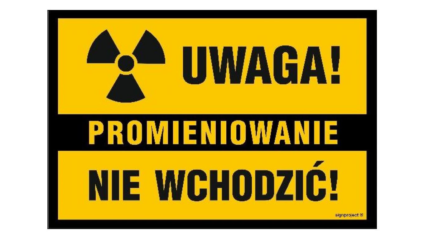NC110 Uwaga Promieniowanie Nie wchodzić 45 x 30 cm BN - Płyta żółta 0,6mm