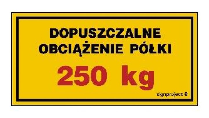 NC118 Dopuszczalne obciążenie półki 250 kg - arkusz 6 naklejek 10 x 5 cm FN - Folia samoprzylepna