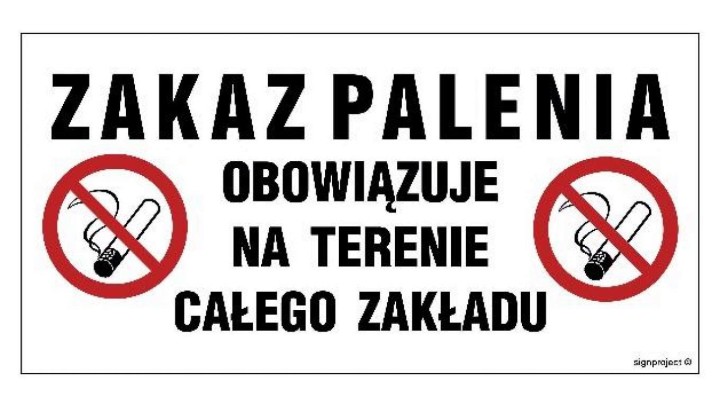 NC131 Zakaz palenia obowiązuje na terenie całego zakładu 20 x 10 cm PN - Płyta 1mm
