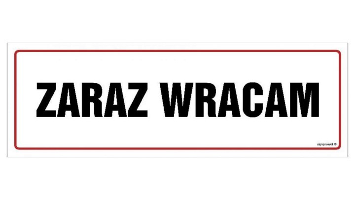 NC137 Zaraz wracam 60 x 20 cm FN - Folia samoprzylepna