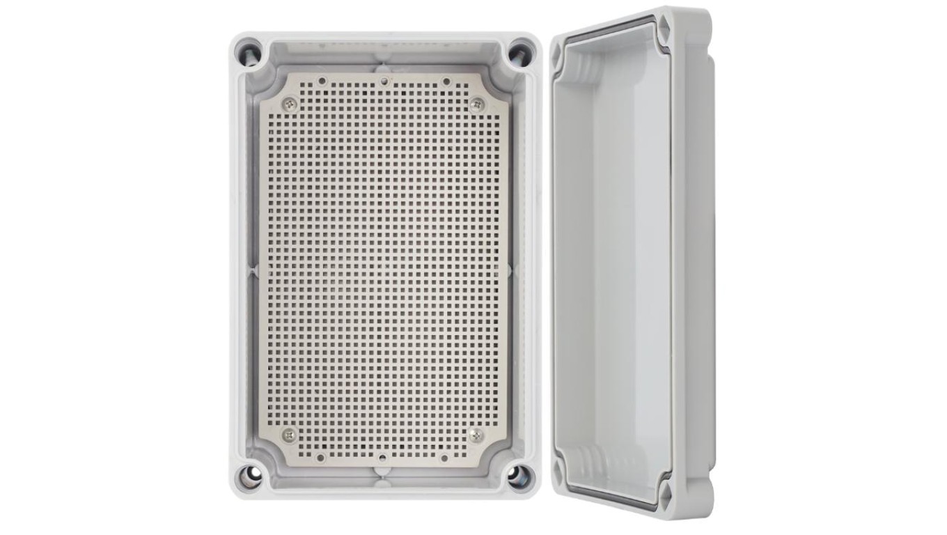 Obudowa ABS 380x280x130, wodoszczelna z plastikowymi śrubami i płytą montażową AWB382813