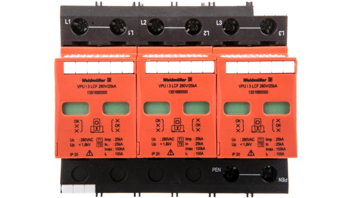 Ogranicznik przepięć B+C Typ T1+T2 3P 25kA 1,6kV 280V VPU I 3 LCF 280V/25KA 1351690000