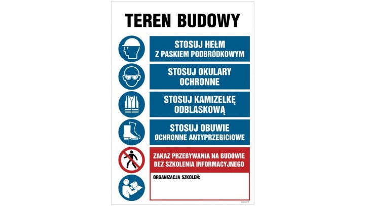 OI002 Teren budowy, Stosuj kak ochronny, Stosuj kamizelkę odblaskową, Stosuj obuwie ochronne, Stosuj rękaw 70 x 105 cm ON - Blac