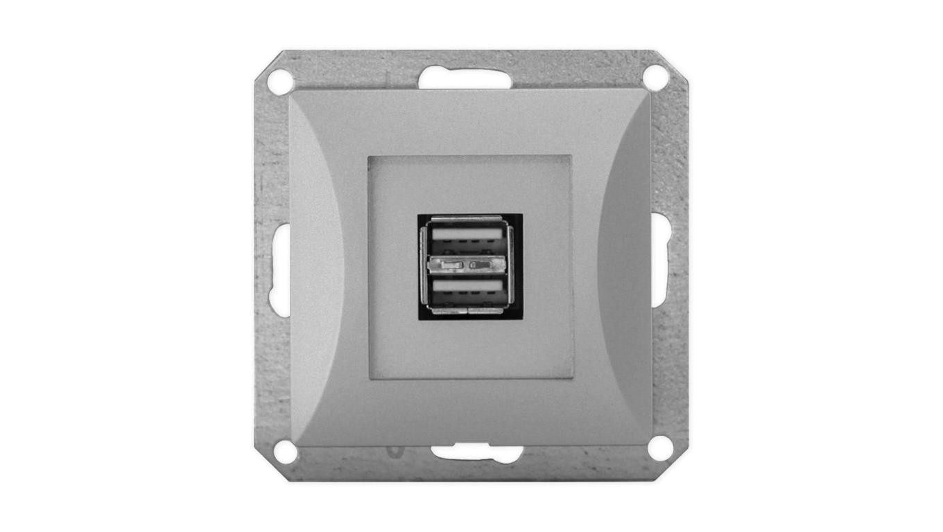 OPAL Gniazdo ładowarka USB podwójna do ramki srebrna GŁ/USB-2/m Op SR