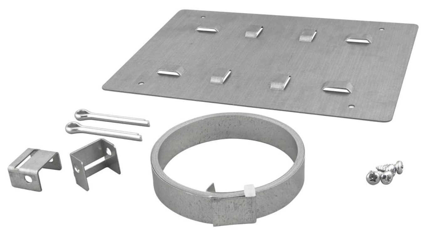 Opaska zaciskowa OZB2 z blachą montażową 194x144mm o montażu obudowy hermetycznej do słupa/masztu