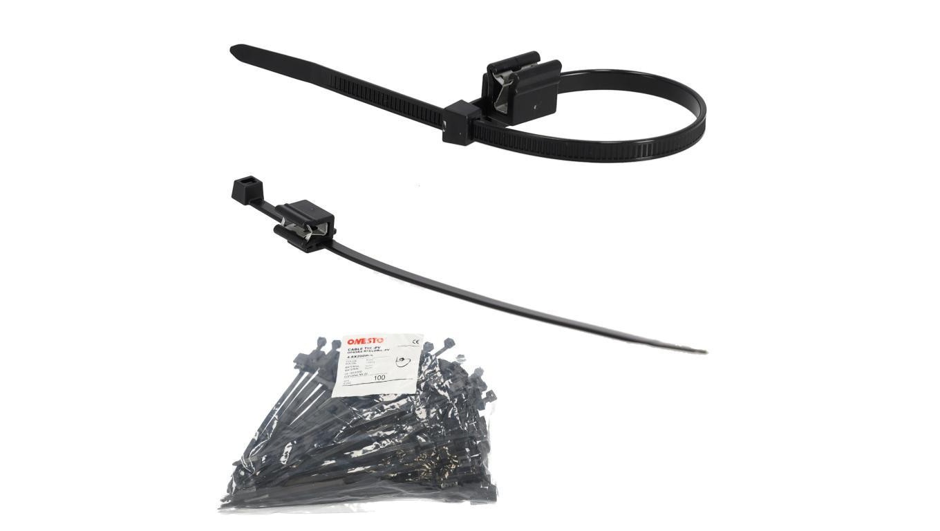 Opaski zaciskowe kablowe UV 4,8x200mm z klipsem do kabla solarnego PV czarne 100szt. ONESTO
