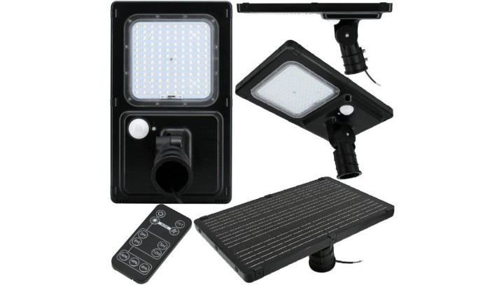 Oprawa, lampa hybrydowa uliczna LED 40W 6600lm barwa 3000K ciepła / 4000K neutralna IP65 czarna czujnik PIR LUXMENA